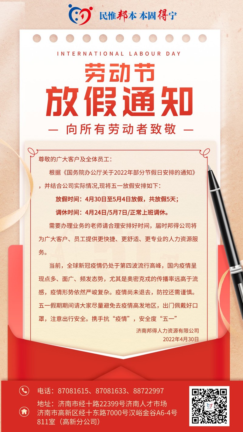 - 2024年5月濟南邦得人力資源有限公司高新分公司關(guān)于開展...